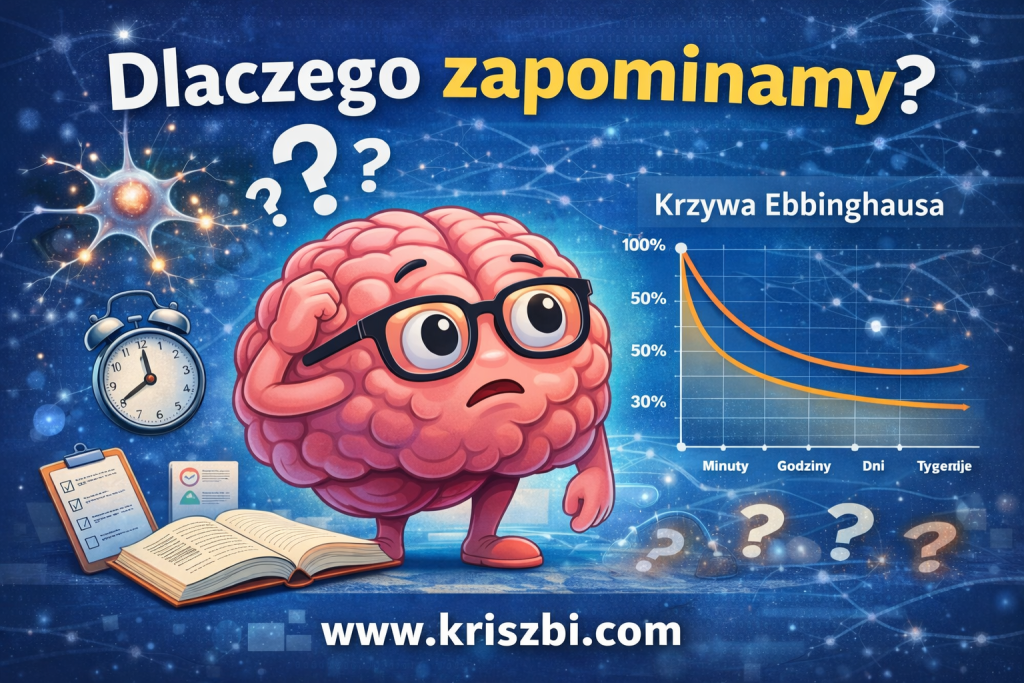Dlaczego zapominamy? Poznaj mechanizmy zapominania, krzywą Ebbinghausa i skuteczne sposoby na lepszą pamięć. Praktyczny poradnik neurobiologii.