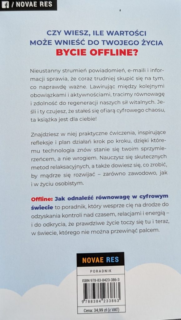 Offline. Jak odnaleźć równowagę w cyfrowym świecie. Was Now 20,99 zł Sale Offline. Jak odnaleźć równowagę w cyfrowym świecie to poradnik, który wesprze cię na drodze do odzyskania kontroli nad czasem, relacjami, energią i do odkrycia, że prawdziwe życie toczy się tu i teraz, w świecie, którego nie można przewinąć palcem. Quantity Enter an amount zł Add to Cart Add to Cart